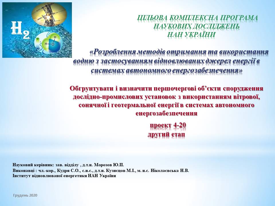«Розвиток наукових засад отримання, зберігання та використання водню в системах автономного енергозабезпечення»